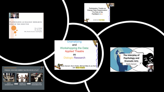 Norris, J., Ganesh, N., Hobbs, K. & Metz, M. M. (2022). Dramatizing and Workshopping the Data: Applied Theatre as Dialogic Research In N. Denzin and M. Giardina (Eds.), Transformative Visions in Qualitative Inquiry. Routledge.